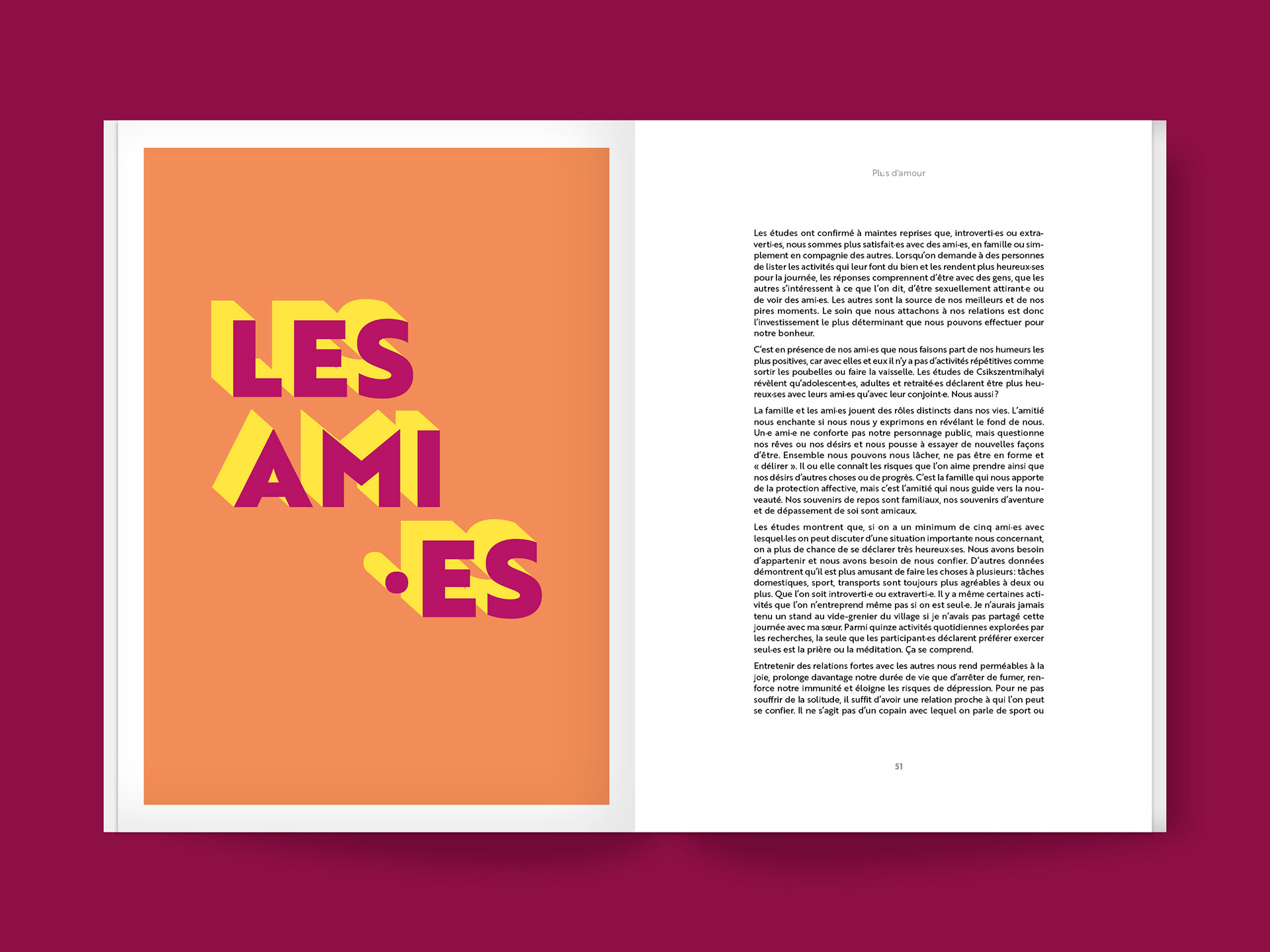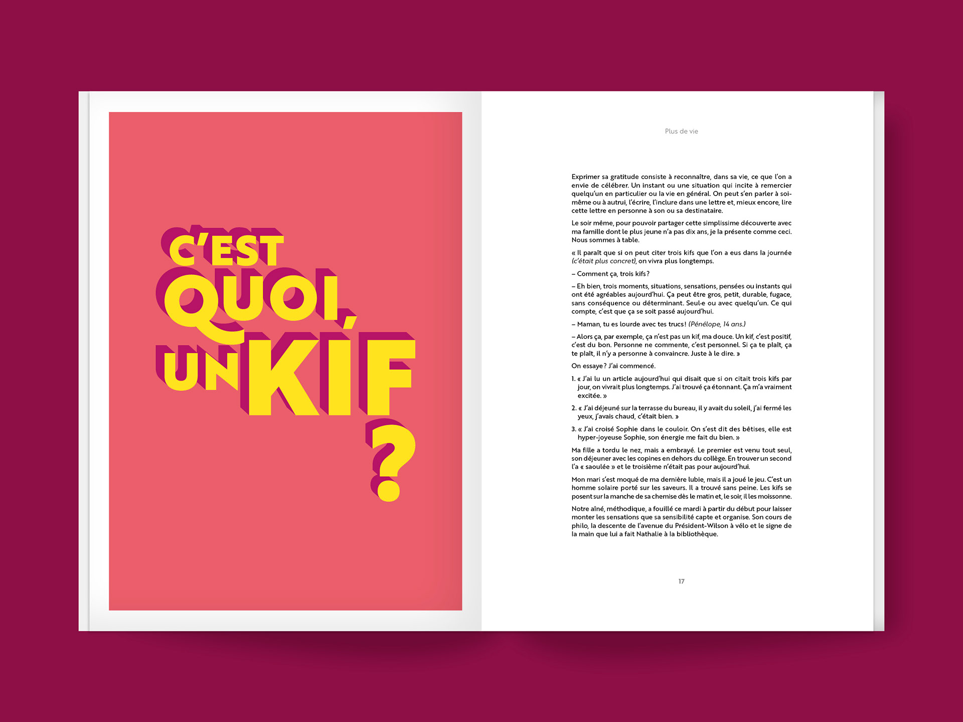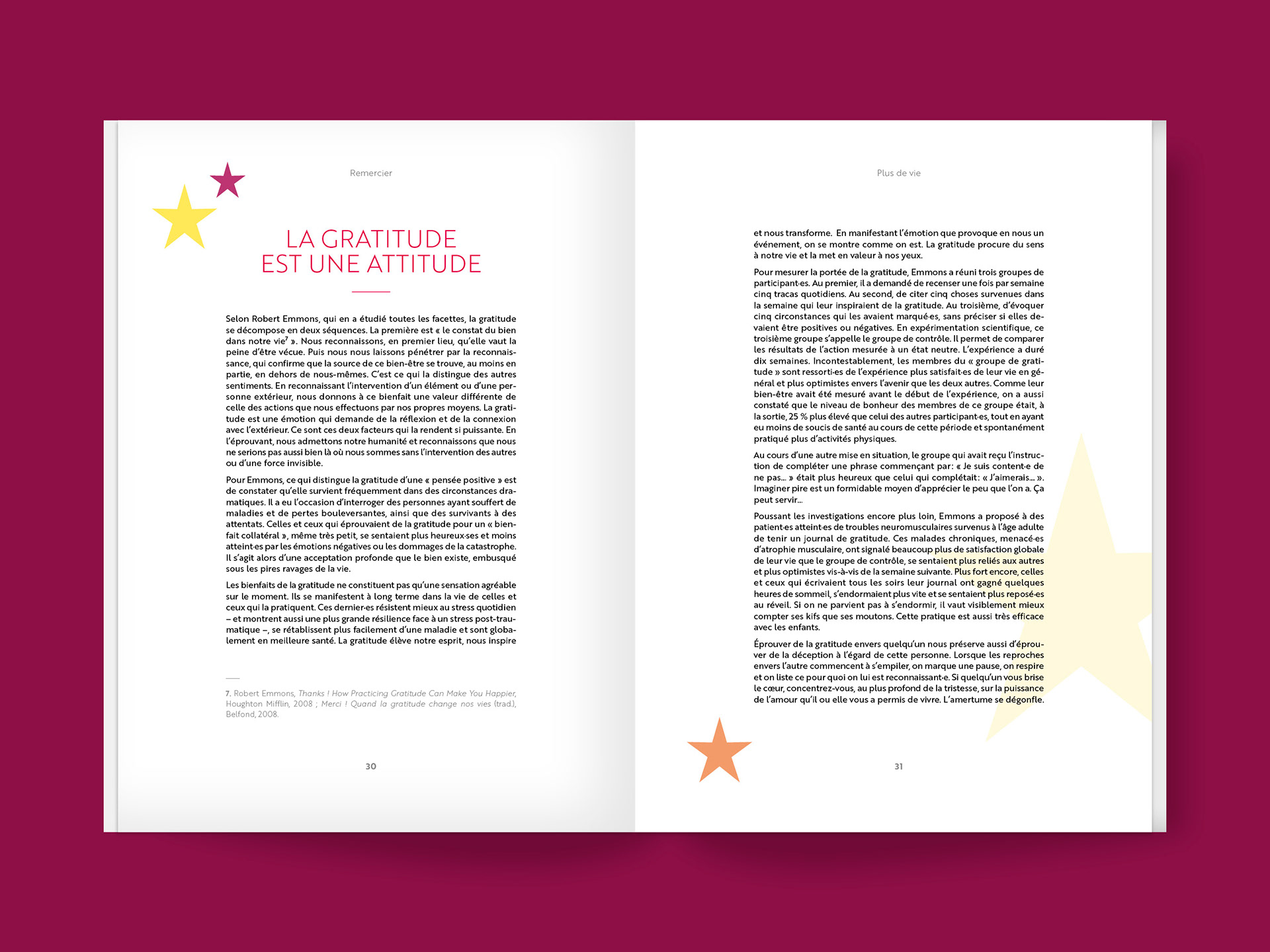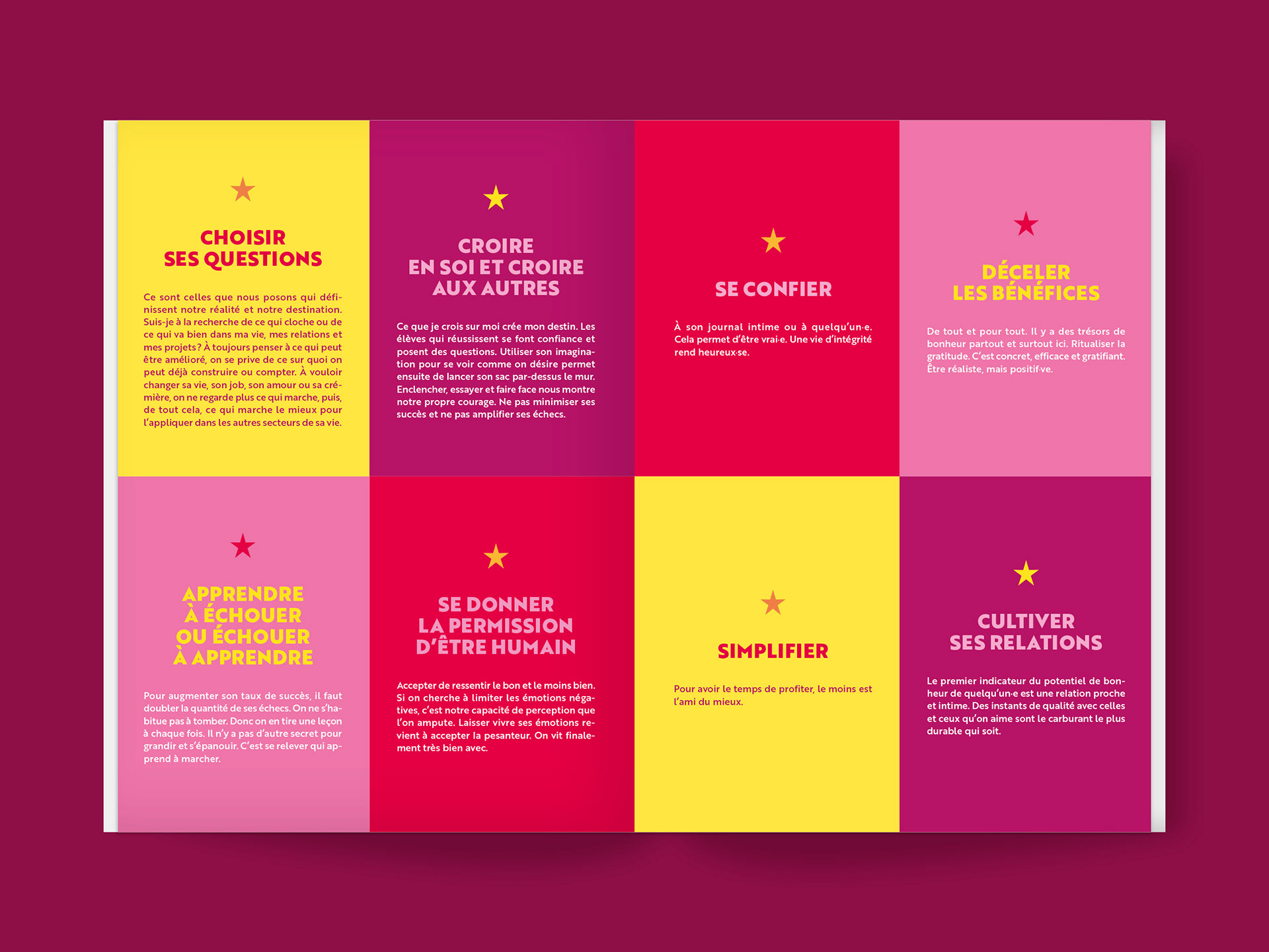 Une nouvelle édition ludique et colorée du best-seller de la psychologie positive écrit par Florence Servan-Schreiber. Conception et réalisation de la mise en page et de la couverture. Broché et vernis sélectif, 144 pages.