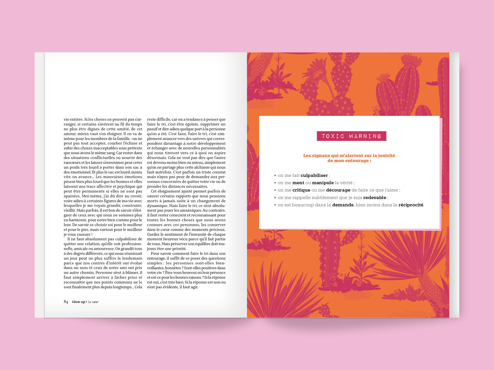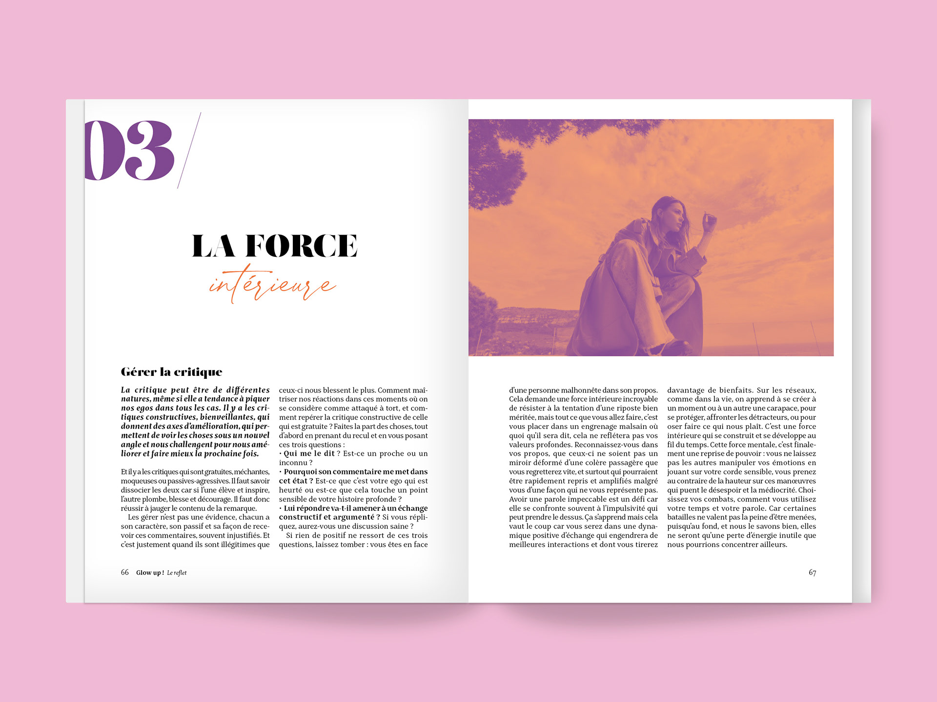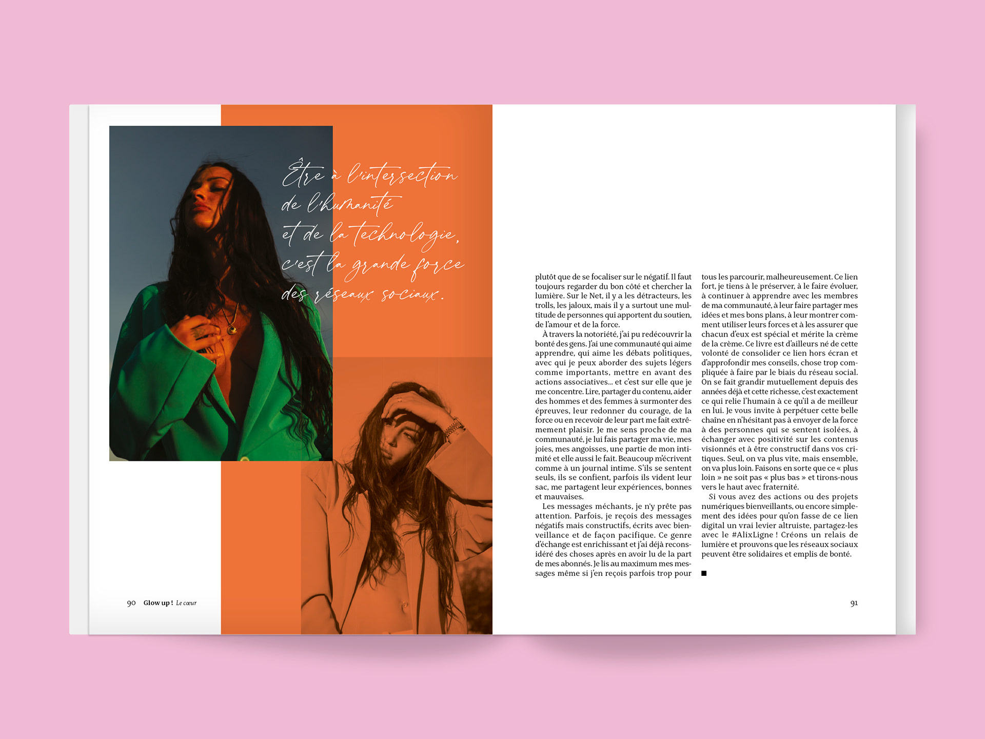 Le parcours et les conseils bien-être d’Alix Desmoineaux, ex-candidate de téléréalité, aujourd’hui influenceuse engagée. Conception et réalisation de la mise en page et de la couverture. Broché, fer à dorer rouge et vernis sélectif, 160 pages.