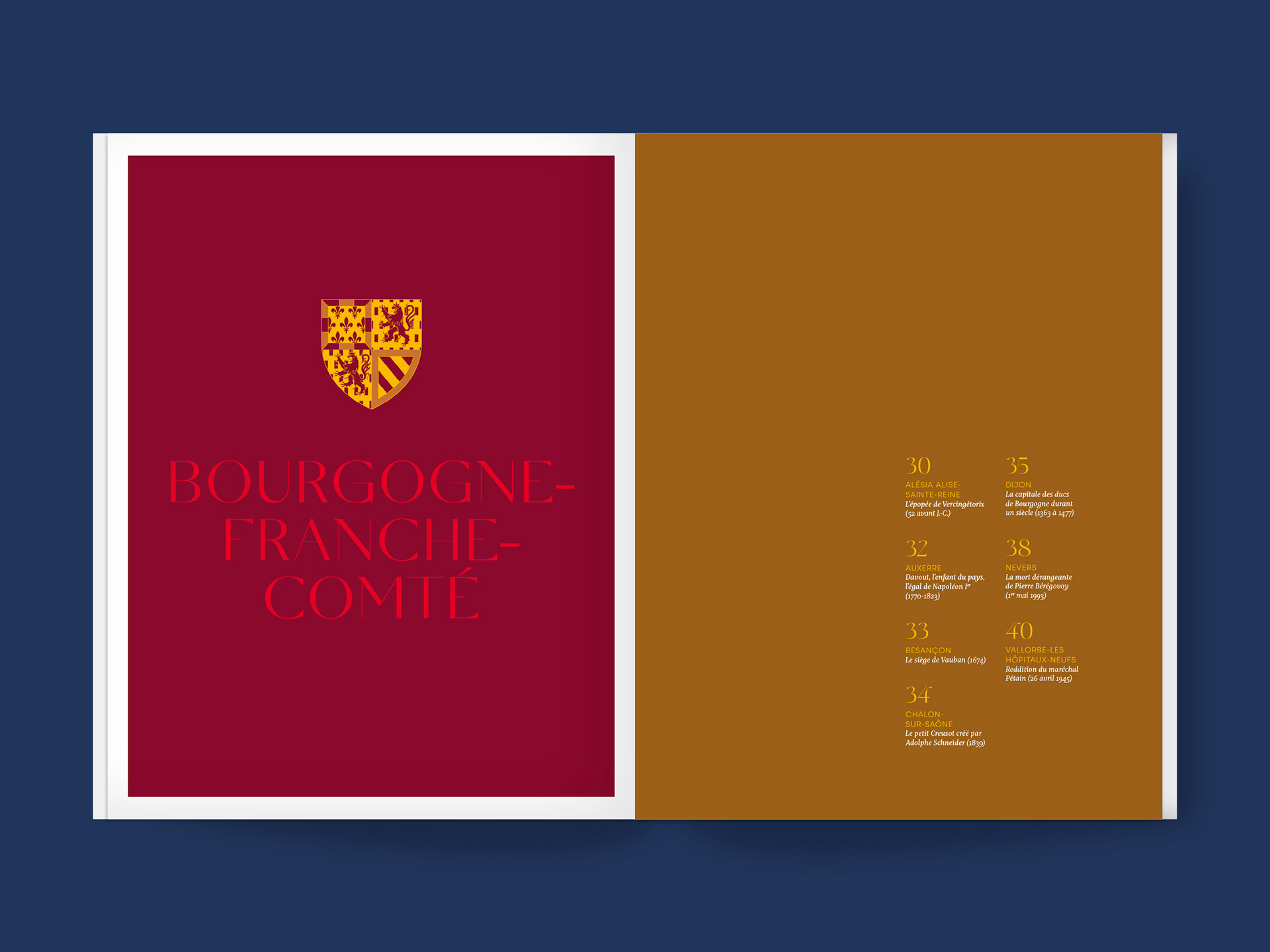 Un périple à travers 100 lieux qui ont marqué l’Histoire de France. Conception et réalisation de la mise en page et de la couverture. Broché et vernis sélectif, 192 pages.